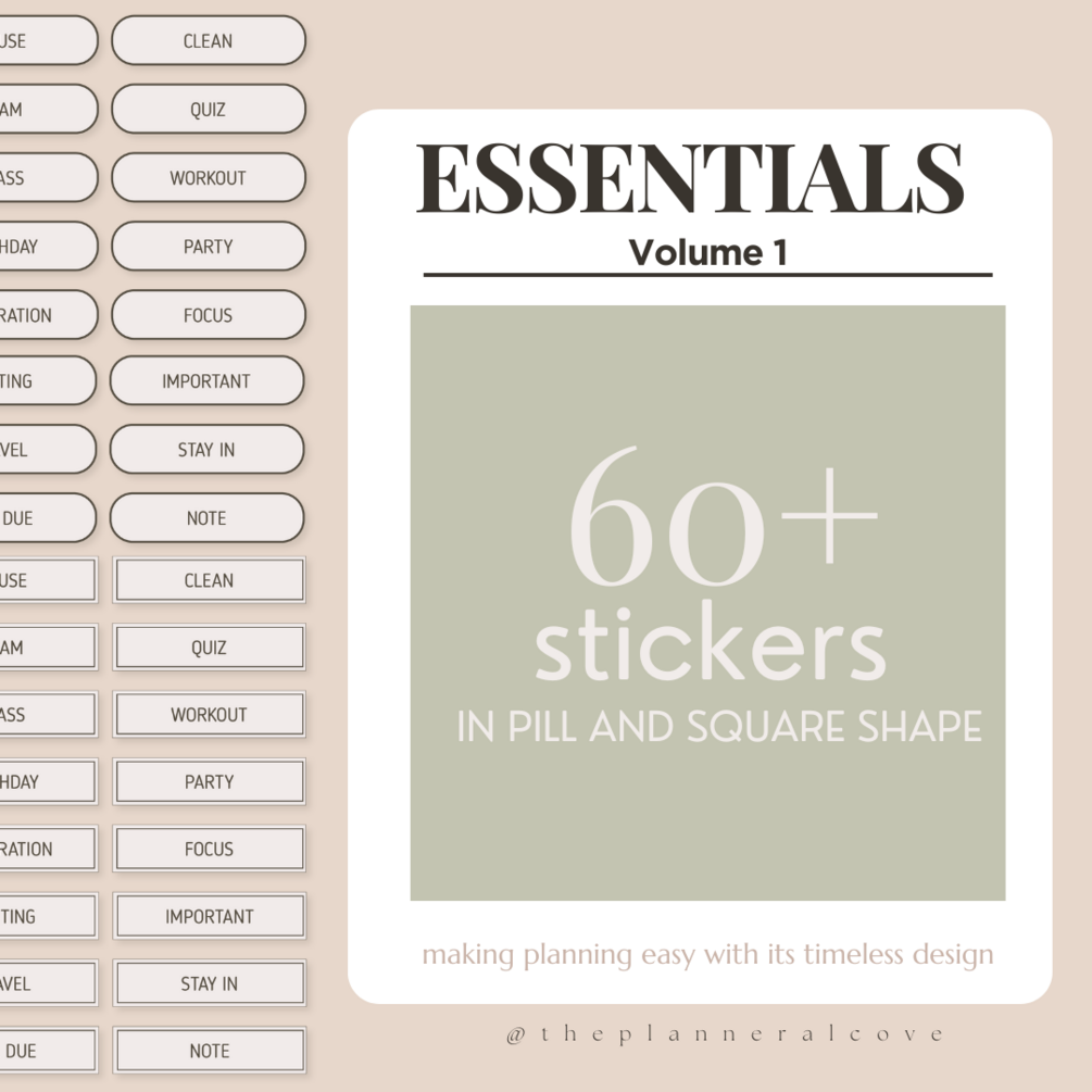 Simplify your digital planning experience with our "Essential Sticker Pack Vol. 1", a curated collection featuring timeless pill-shaped and square-shaped stickers designed to effortlessly enhance your everyday planning or any other creative endeavor.